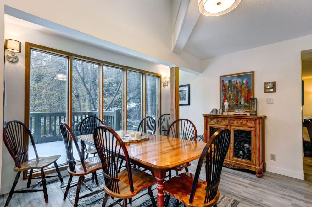 Situated in one of Canmore’s most sought-after neighbourhoods, this beautifully updated home offers four bedrooms, three bathrooms. A welcoming foyer leads into a bright, open kitchen that flows seamlessly into the dining room, where a wall of oversized windows brings in natural light and opens onto a generous outdoor deck. The inviting living room features a cozy fireplace, this level also includes a convenient bedroom and full bathroom - ideal for guests or home office needs. Upstairs, the primary suite is complemented by an additional bedroom, full bathroom and ample storage options.