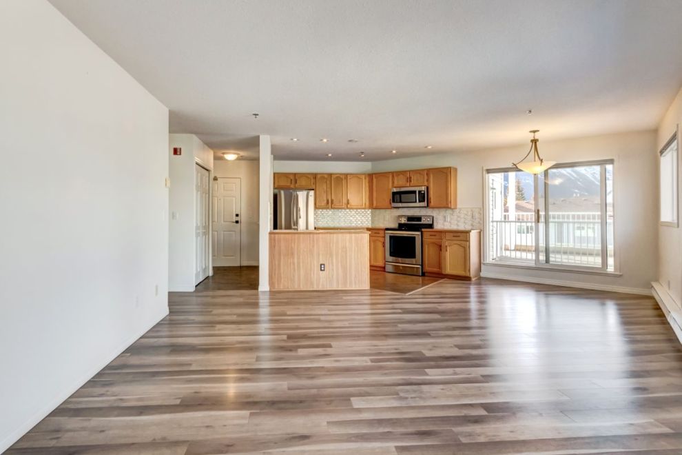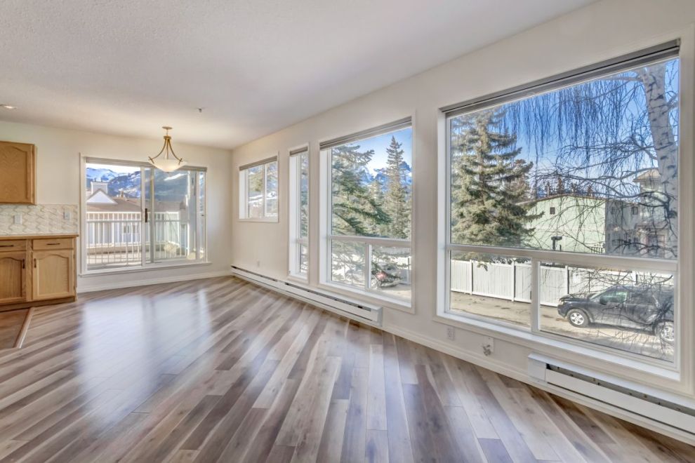 The primary bedroom features a walk in closet and private ensuite, while a second bedroom, full bathroom, walk-in laundry room and ample storage complete the layout. Residents enjoy excellent on site amenities, including an outdoor hot tub, a common gathering space, underground parking and storage. Located just steps from hiking and biking trails plus numerous Bow Valley attractions.