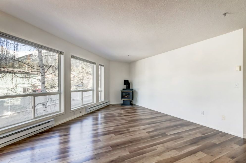 This bright two bedroom, two bathroom corner suite offers over 980 sqft of single level living, perfectly positioned to capture breathtaking mountain views. Oversized windows and the coveted corner location flood the home with natural light, while its sunny valley side setting enhances the warm, inviting atmosphere. The open concept kitchen, dining and living area is ideal for both everyday living and entertaining, anchored by a cozy fireplace. Step outside to the spacious private patio, an extension of the living space and the perfect spot to relax and take in the surrounding alpine scenery.