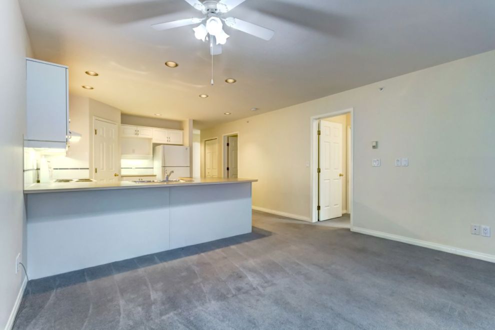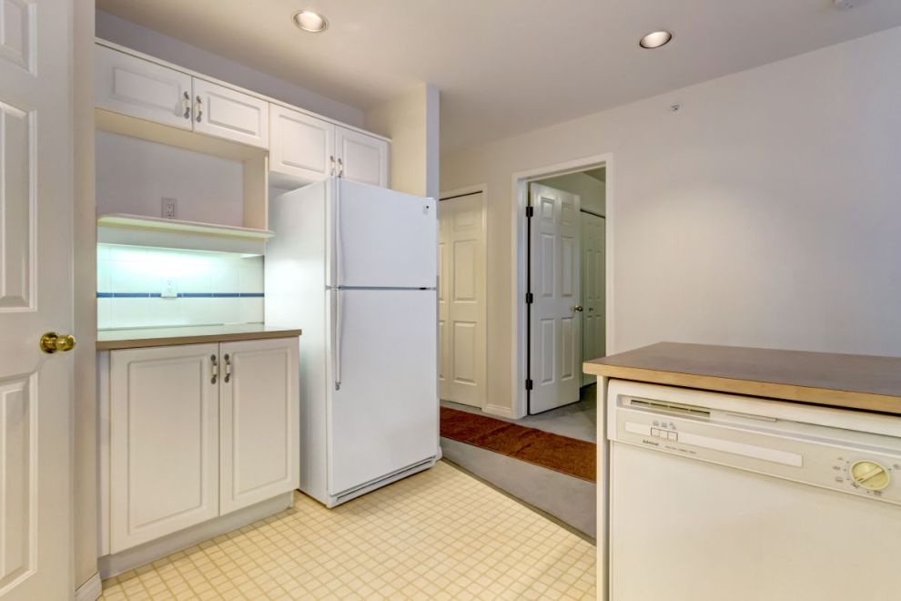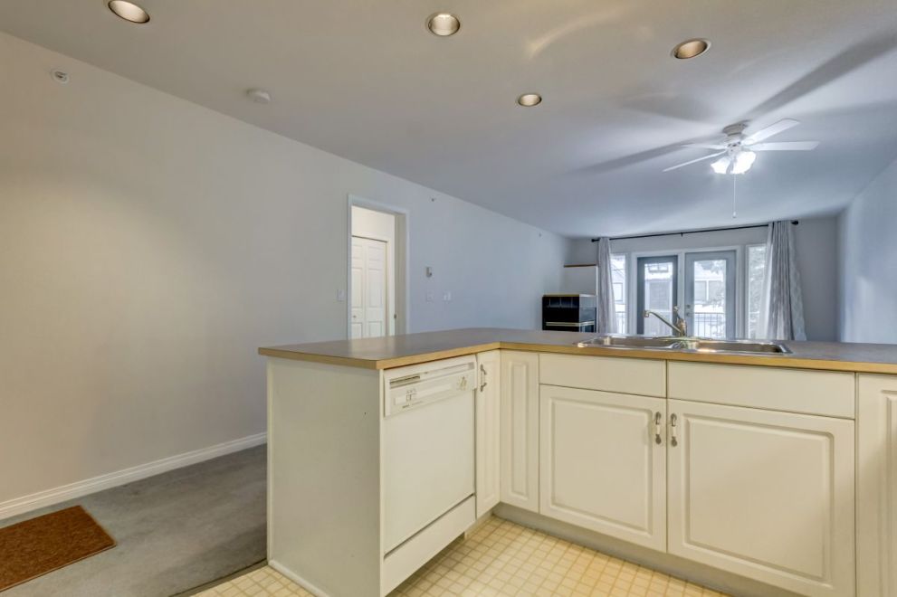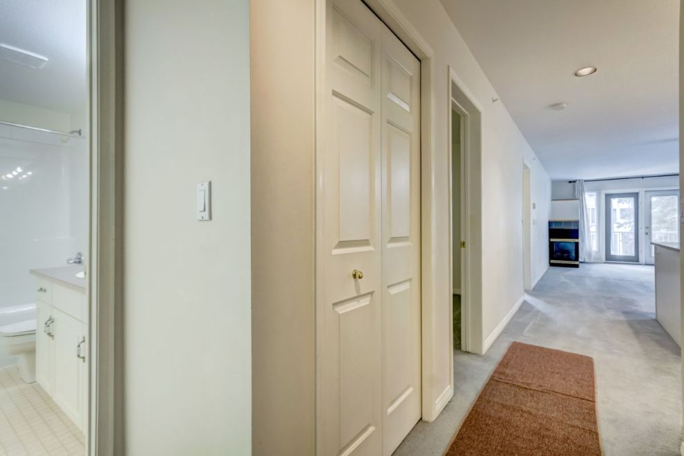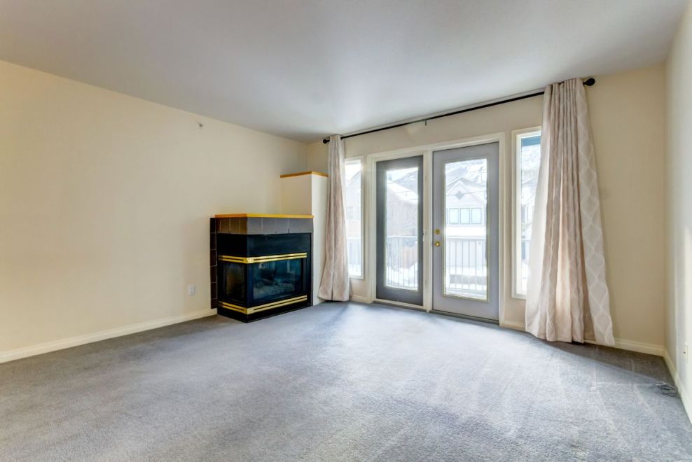 Tucked away at the rear of the building, this spacious home offers over 1,000 sqft of well designed living space with two bedrooms and two bathrooms. The open concept kitchen, dining and living area is warm and inviting, featuring a cozy fireplace and a large window capturing desirable south-western exposure. Step outside to the generous deck, perfect for relaxing and enjoying the outdoors.